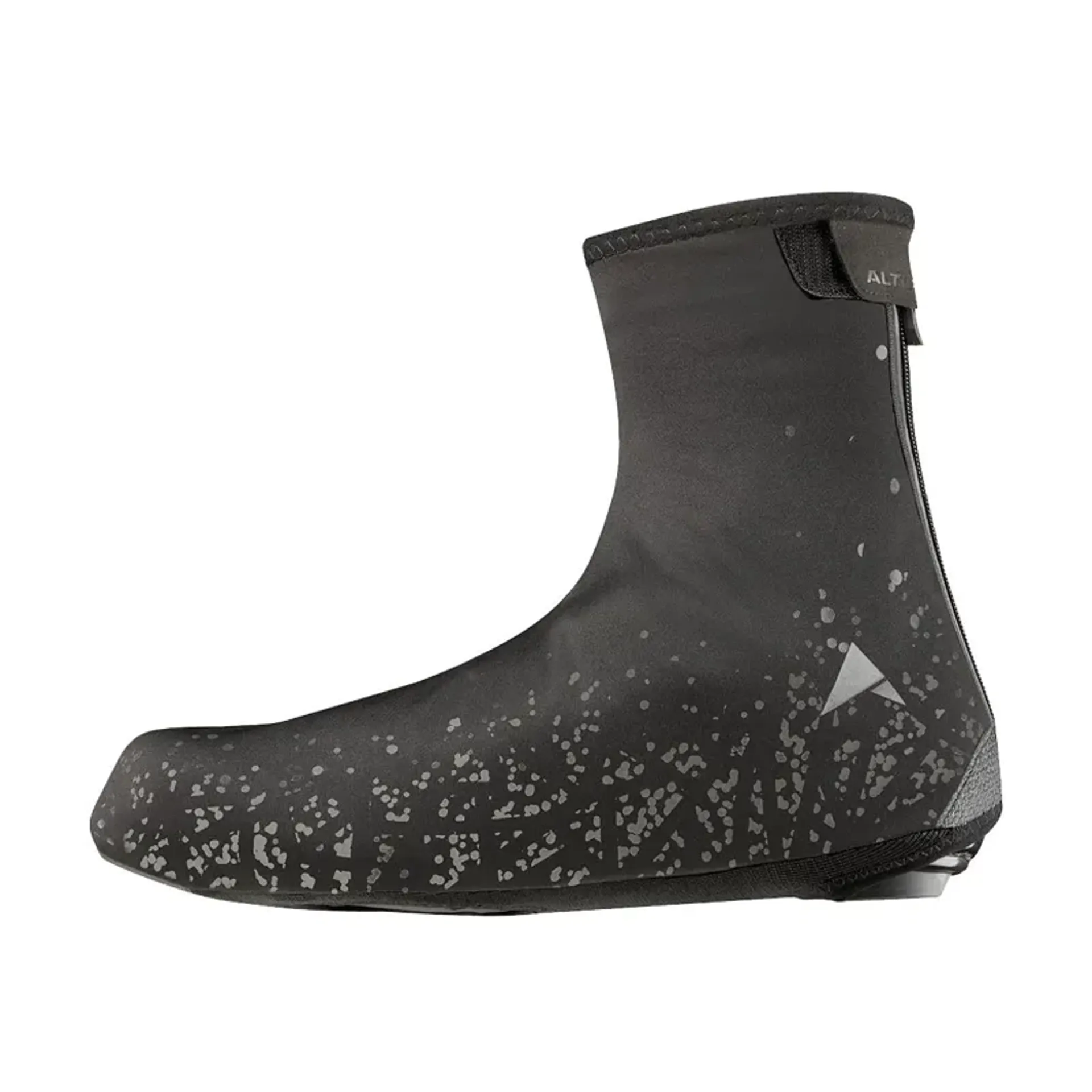 The altura firestorm overshoes offers protection in wet weather for commuting and road rides. Engineered with a softshell fabric for comfort with abrasion resistant underfoot toe and heel fabrics. Close fitting with an angled rear closure auto lock zipper with hook and loop ankle adjustment. As part of the firestorm collection the overshoes have been designed with a reflective print providing greater visibility to other road users in low light and darker conditions.