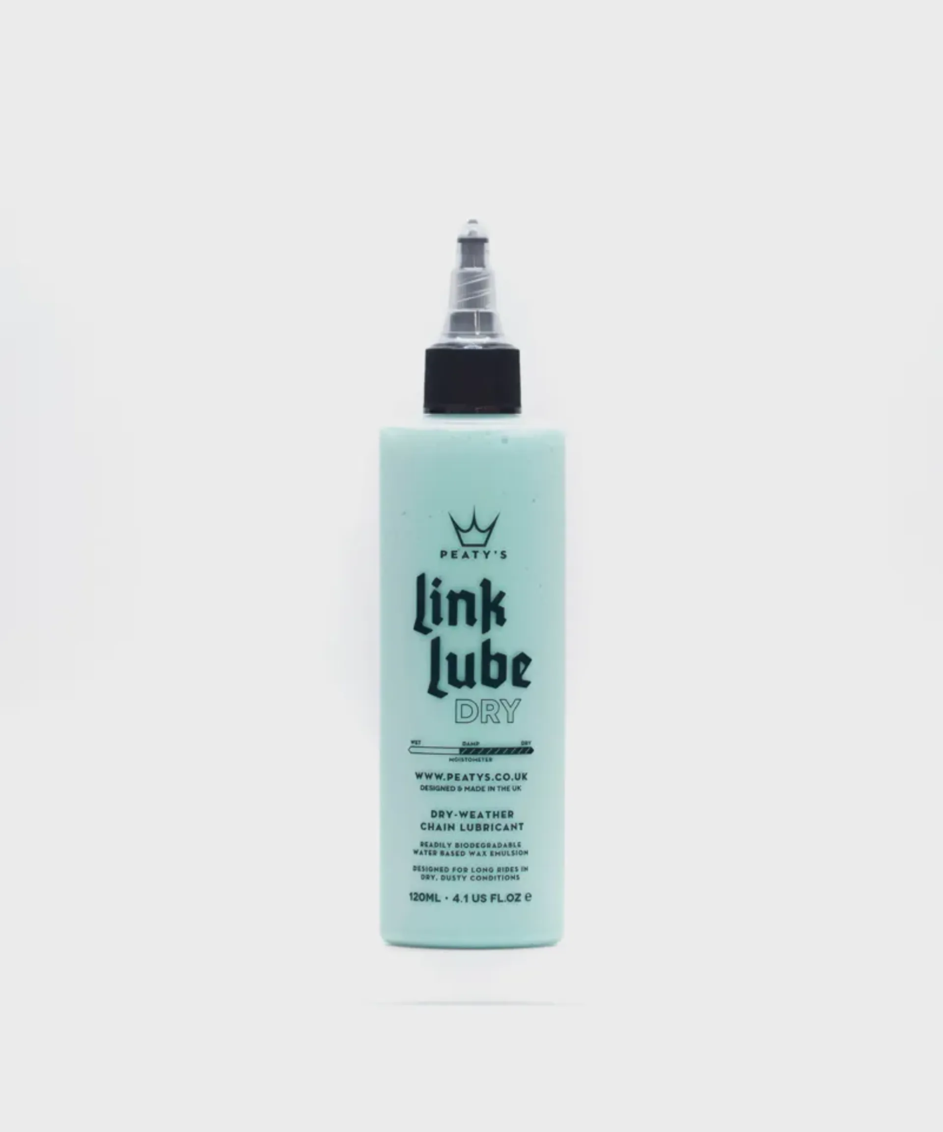 Linklube dry is a readily biodegradable wax-based chain lube for use in desert dry and dusty to mildly moist conditions. Our unique formula uses a blend of waxes suspended in a water-based emulsion to give you a long-lasting clean-running quiet chain.